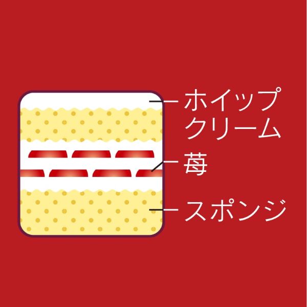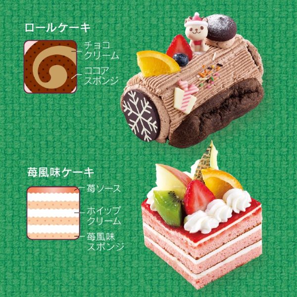 サンタさんとトナカイさんがクリスマスを楽しくにぎやかに。クリーミーなホイップクリームと甘酸っぱい苺のコンビはみんなに愛されるおいしさです。