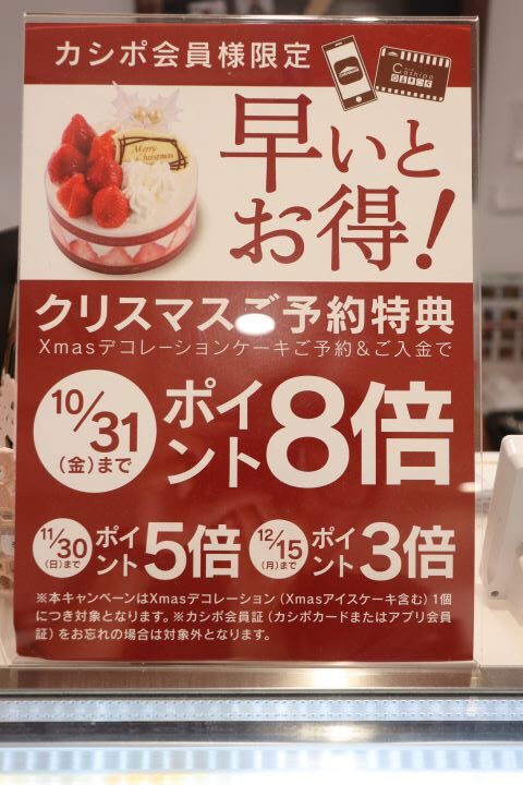 また、11月30日(日)までのクリスマスケーキご予約で、カシポポイント5倍と大変お得な特典がございます。