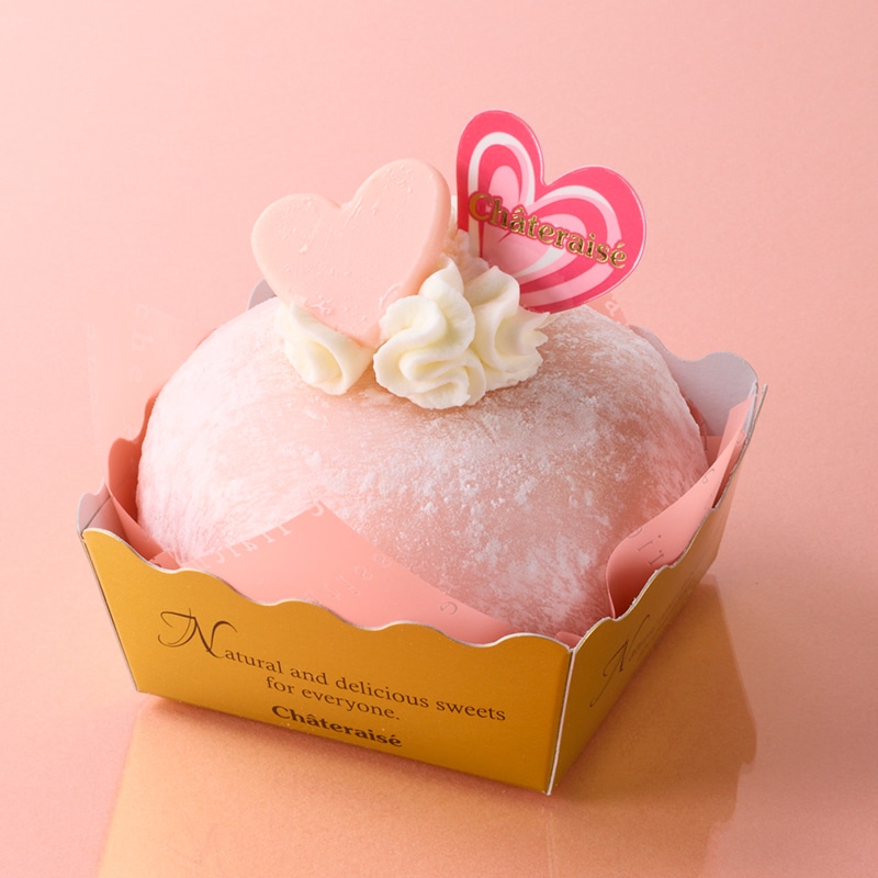 ハートをあしらった、いい夫婦の日にぴったりな可愛いらしい1品です。ラズベリー入りの爽やかでコクのあるチーズクリームと芳醇な香りの苺クリームを、しっとりとしたスポンジともちもち食感の求肥で包みました。