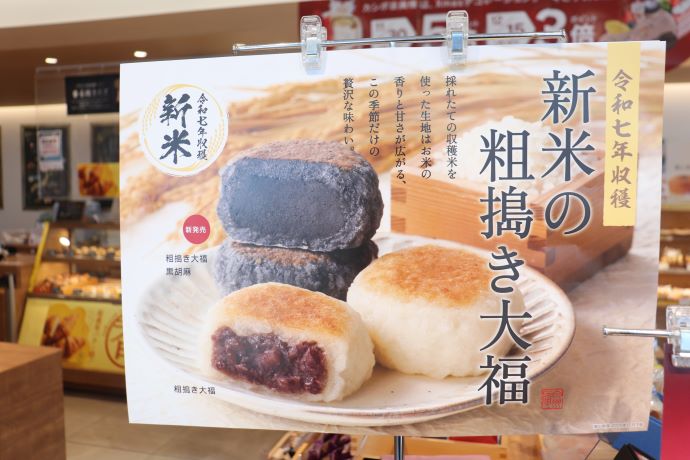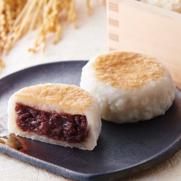北海道産はくちょうもち米を使用した生地で、自家炊き粒餡を包み、天面を香ばしく焼き上げた焼き大福です。米の風味を大切にするため、米の粒感を残し、やわらかくコシのある大福の食感に仕上げました。