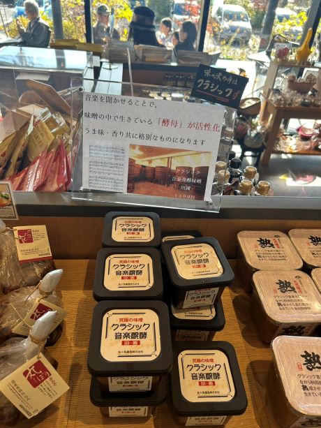 味噌も様々な種類のものがありました。写真はクラシック音楽を聴いた麹で作った味噌です。