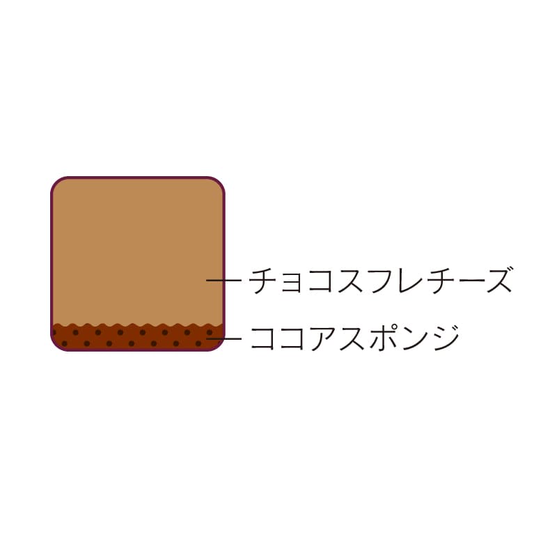 フランスブルターニュ産クリームチーズ・クーベルチュールチョコレートを使用し、低温で長時間焼成することで、水分が飛びにくくなるため、水分の多いしっとりとしたなめらかな食感のスフレチーズケーキです。