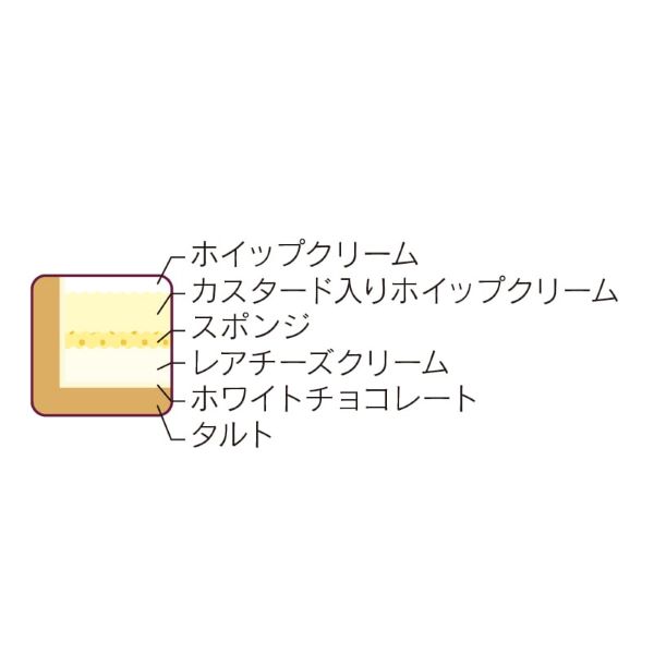 ふんわりとしたスポンジで、フレッシュな苺と甘酸っぱい苺果肉入りソース、カスタード入りホイップクリームをサンドしました。トッピングにも苺を飾り、苺本来の甘酸っぱさと、ホイップクリームのリッチな味わいをお楽しみいただけます。