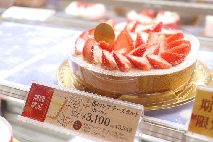 「苺のレアチーズタルト」1ピース¥420(税込み¥453)15cmホール¥3,100(税込み¥3,348)