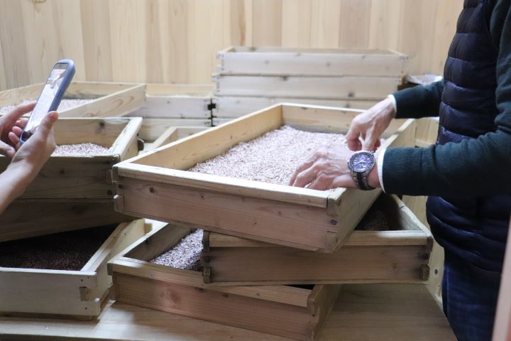 麹を入れているこの木箱も、筒野さんの手作り。