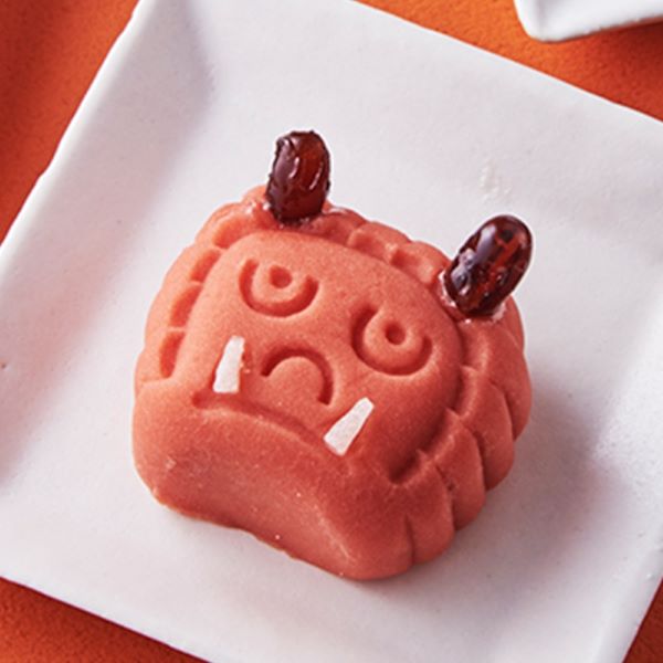 甘納豆を使用した角と、飾り羊羹で牙を表現し可愛らしい赤鬼に。