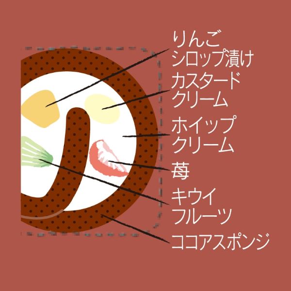 ふんわりと焼き上げたココアスポンジに苺、キウイ、りんごシロップ漬け、カスタードクリーム、ホイップクリームを巻いた恵方巻を見立てたロールケーキです。(2026年の恵方は南南東です)