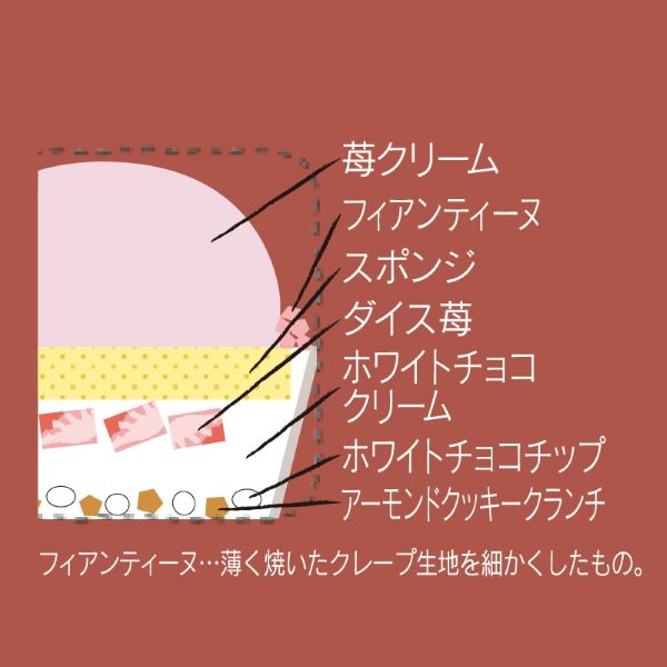 節分の「赤鬼」をイメージしました。苺クリームにシリアル入りチョコやフィアンティーヌで顔を飾りつけた見た目も楽しいスイーツです。