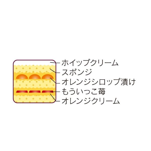 オレンジクリーム、苺、オレンジシロップ漬けをスポンジでサンドし、ホイップクリームでコーティングしました。