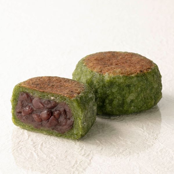 国産もち米を使用し、よもぎを加えた生地で自家炊き粒餡を包みました。天面を香ばしく焼き上げた焼き大福です。