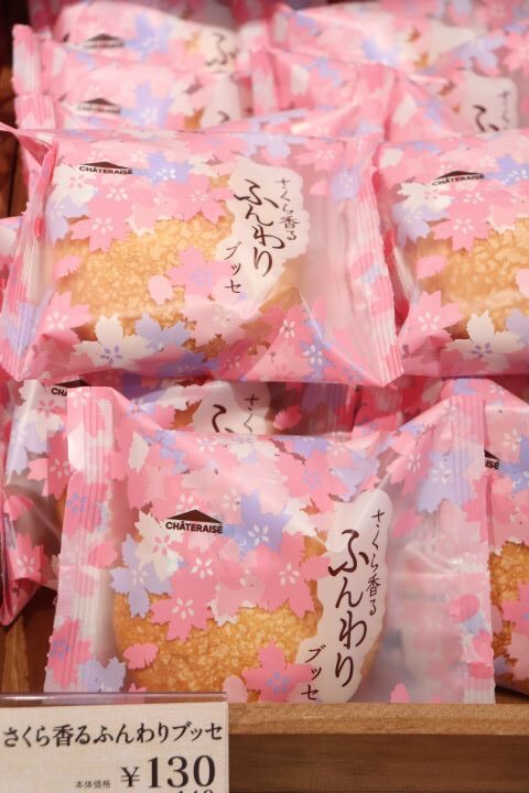 春を感じる桜のお菓子などが新発売となり、売り場がやわらかな桜色に包まれています。