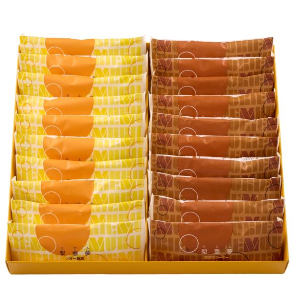 「梨恵夢(バター風味・炭焼きコーヒー)」12本入り¥860(税込み¥928)20本入り¥1,350(税込み¥1,458)32本入り¥2,160(税込み¥2,332)