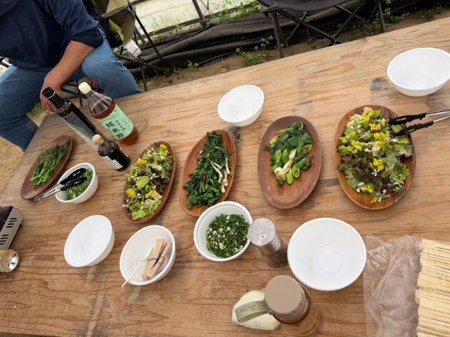 のらぼう菜、サニーレタス、菜花、葉にんにく、ネギ、わけぎー---